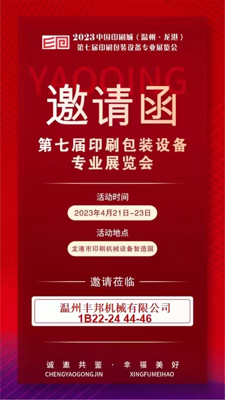 溫州豐邦機(jī)械有限公司參加2023中國印刷城溫州龍港第七屆印刷包裝設(shè)備專業(yè)展覽會